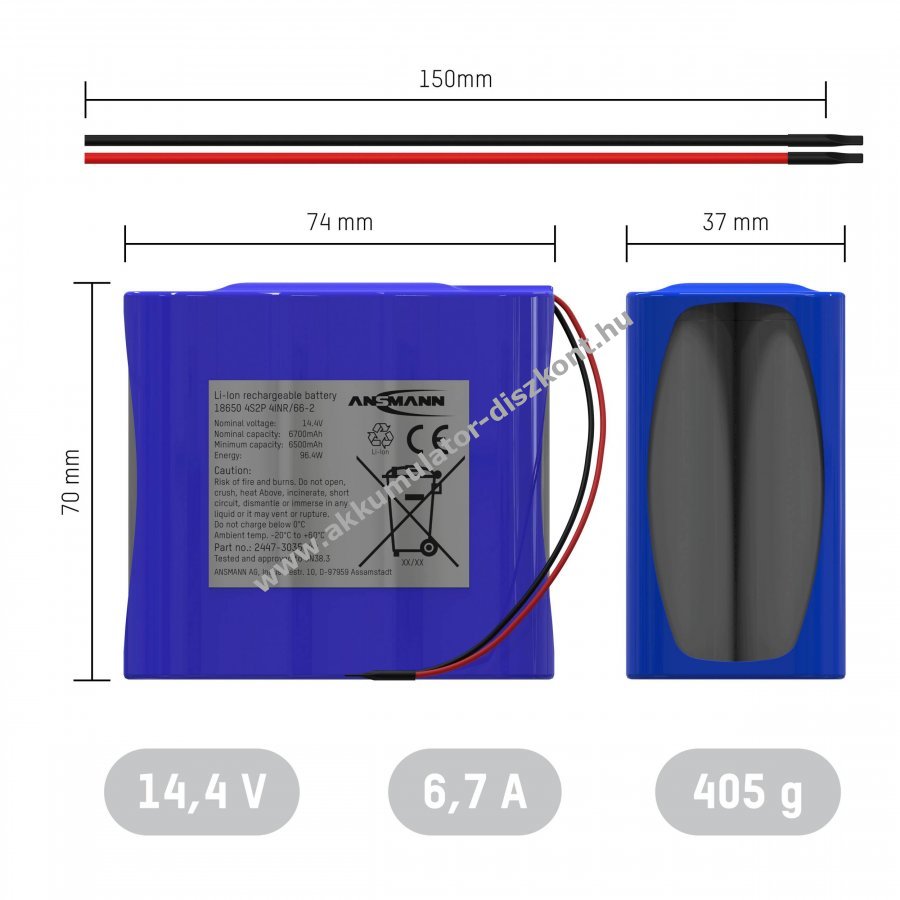 14.54V 6700mAh/97.4Wh Li-Ion kék 74.5mm x 37.5mm x 71mm Ansmann