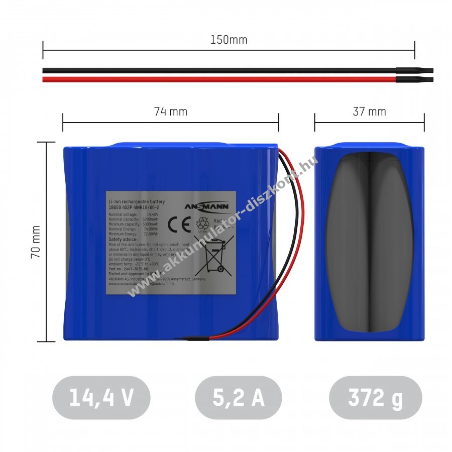 A lítium-ion és lítium-polimer akkumulátorokat csak az arra felhatalmazott szakemberek használhatják. A rövidzárlat vagy az akkumulátorok nem megfelelő kezelése vagy használata tűzhöz vagy robbanáshoz vezethet. A lítium-ion vagy lítium-polimer akkumulátor megvásárlásával Ön automatikusan megerősíti, hogy azt szakszerűen kezeli és rendeltetésének megfelelően használja. A megfelelő kezelés magában foglalja az akkumulátor megfelelő tárolását és az akku típusának megfelelő töltővel való töltését is (hűvös és száraz helyen tárolja, az optimális töltöttségi állapot kb. 40-60%) Nem vállalunk felelősséget a termék nem megfelelő kezeléséből vagy a nem rendeltetésszerű használatából származó személyi és anyagi károkért!