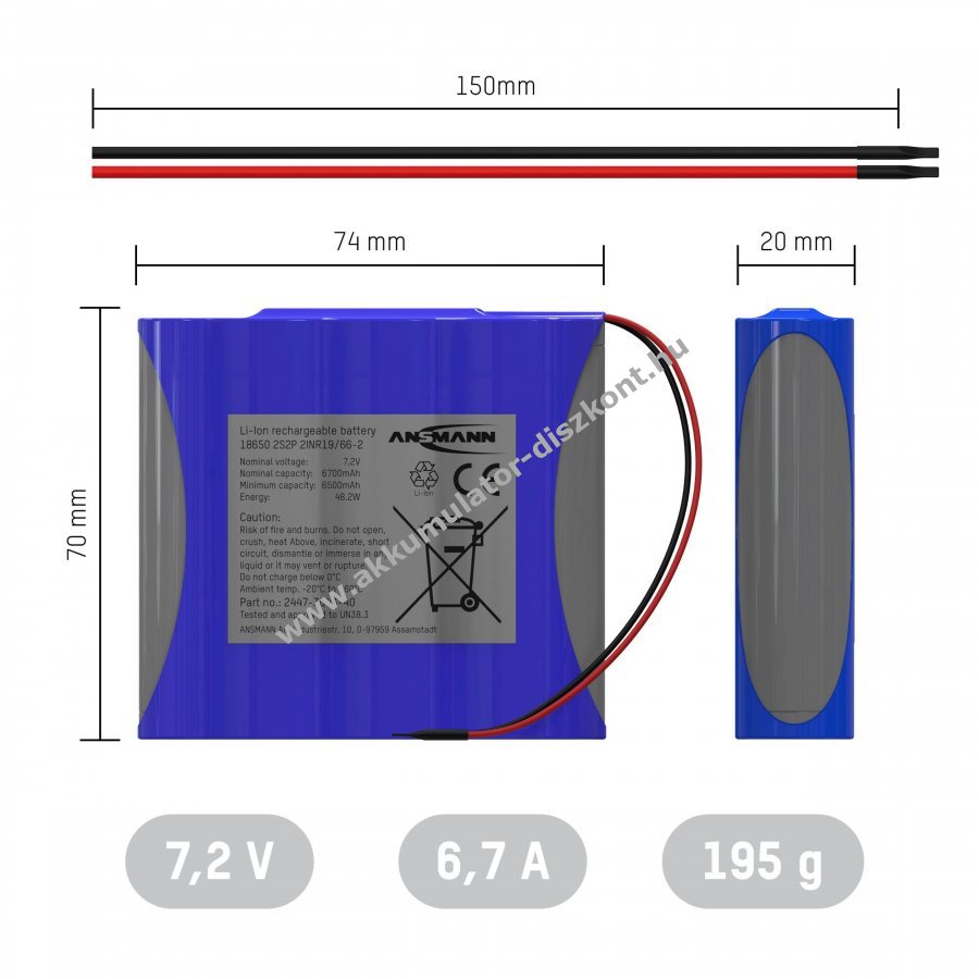 7.2V 6700mAh/48.2Wh Li-Ion kék 7.4mm x 2.2mm x 7mm Ansmann