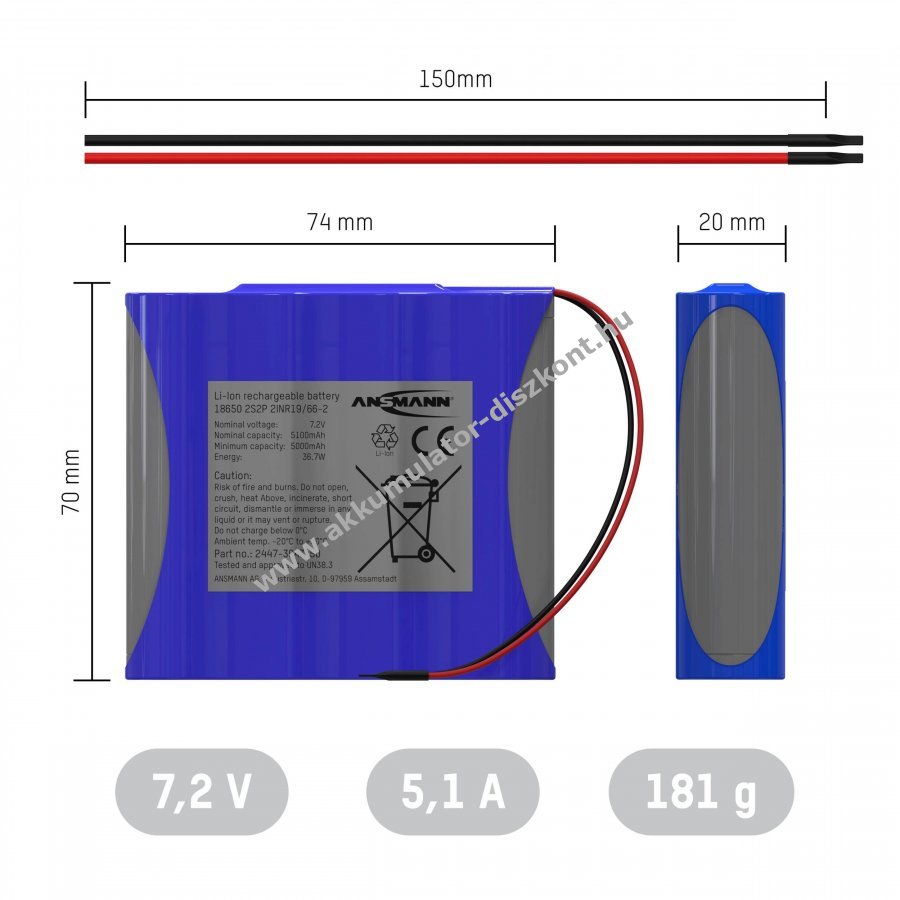 7.2V 5100mAh/36.7Wh Li-Ion kék 7.4mm x 2.2mm x 7mm Ansmann