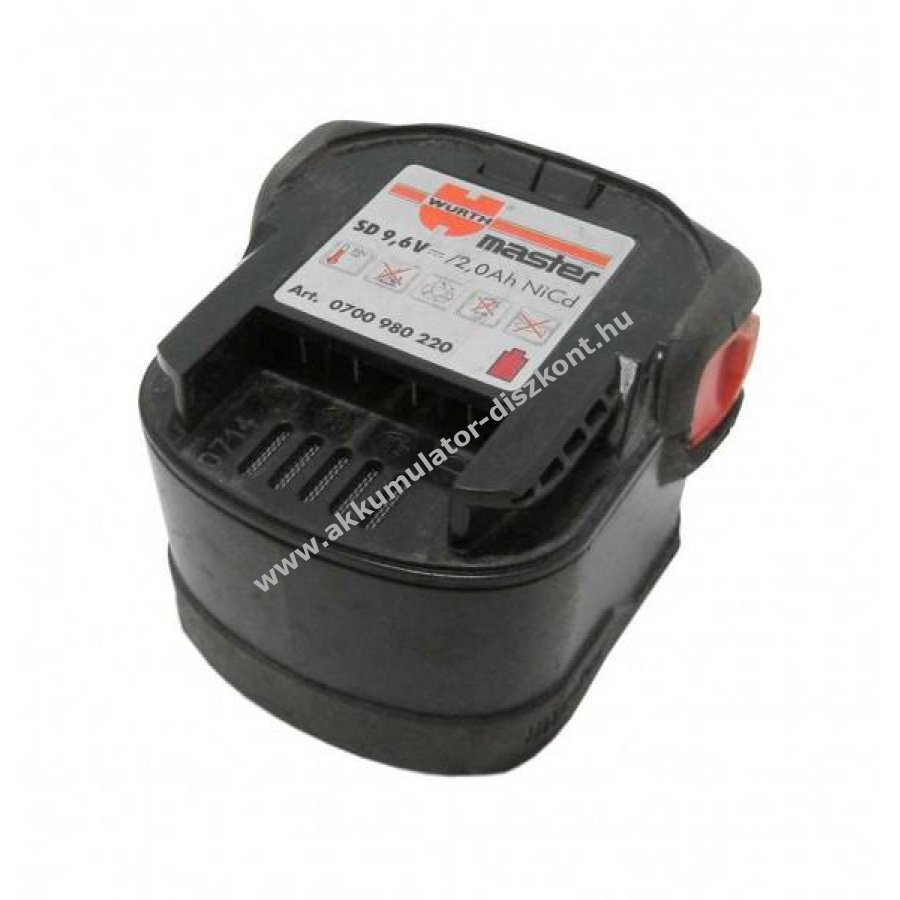 9,6V 2000mAh NiMH szerszámakku, kompatibilis a Würth Master 0700 980 220 és 0700980220 modellekkel. Kifejezetten nagy lemerítési áramokra tervezett cellatechnológia biztosít erőteljes és egyenletes teljesítményt egészen az utolsó töltésig. A kivitel megfelel a szerszámgyártó előírásainak, az akku biztonságosan rögzül a készülékben.