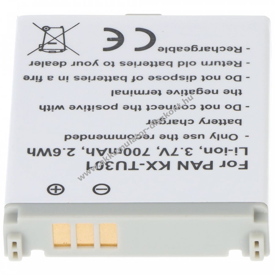 Kínálatunkban egy kiváló minőségű akkumulátor található| amely ideális régi vagy hibás Panasonic telefon akkumulátorának csereakkumulátoraként| de akár útközben csereakkumulátorként is. Használja és töltse fel az akkumulátort a szokásos módon| egyszerűen a szabványos töltőn|tápegységen keresztül. A védőelektronika és a kiváló minőségű alkatrészek feldolgozása magas szintű biztonságot nyújt| mind a túltöltés| mind a rövidzárlat ellen. Ez lehetővé teszi az akkumulátor számára| hogy több töltési-kisütési ciklust érjen el. Ez az új akkumulátor hosszabb élettartamát jelenti. Akkumulátoraink kizárólag új| minőségi márkás cellákkal készülnek.