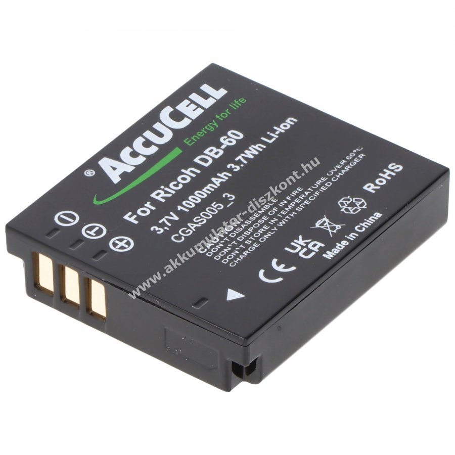 3.7V 1000mAh/3.7Wh Li-Ion 40.40mm x 35.45mm x 9.45mm AccuCell
