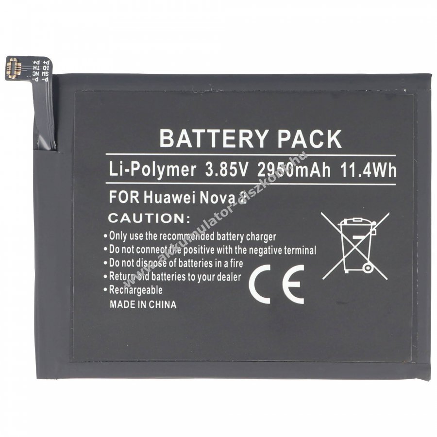Helyettesítő Akkumulátor Huawei Nova 2 Li-Polymer 3,85V 2950mAh 11,4Wh beépített szerszám nélkül