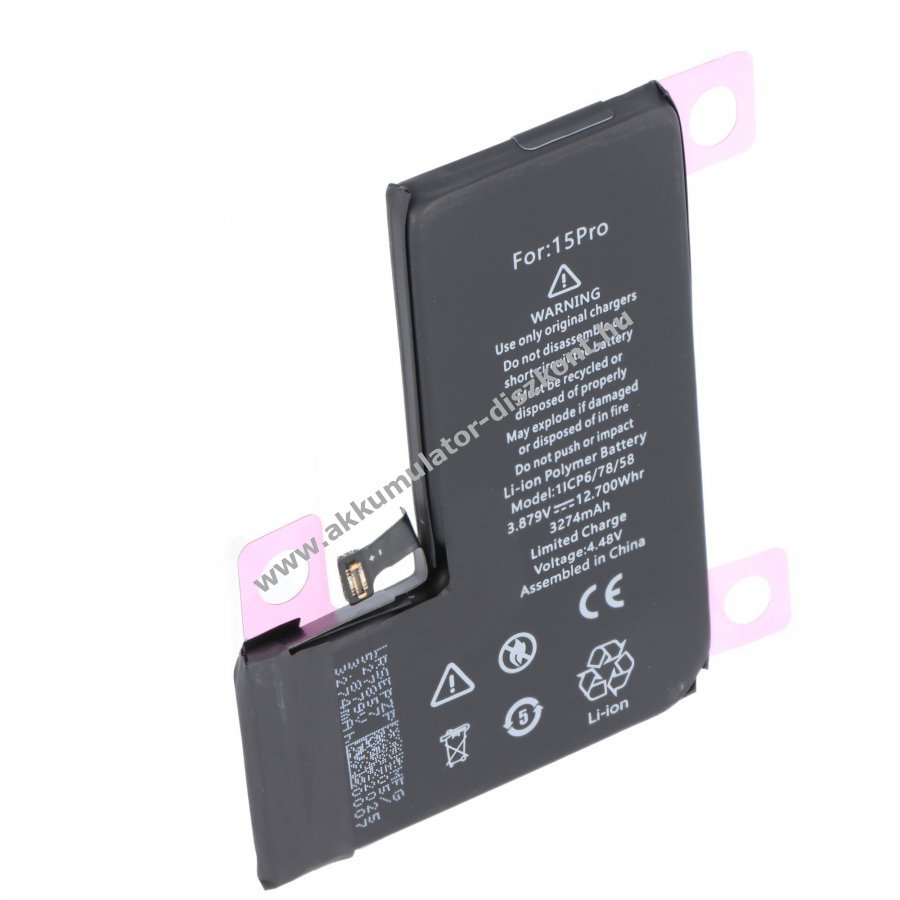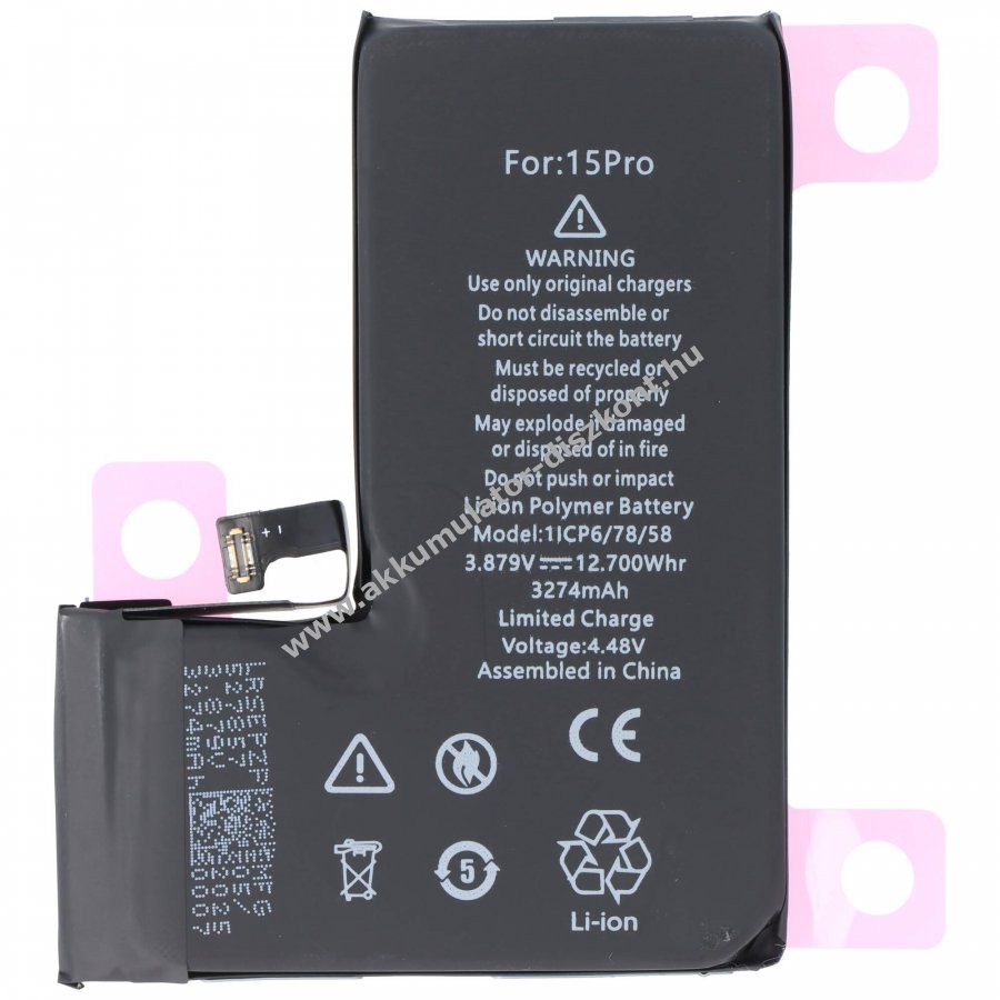 Helyettesítő Akkumulátor Apple iPhone 15 Pro 3,87V 3274mAh Li-Polymer