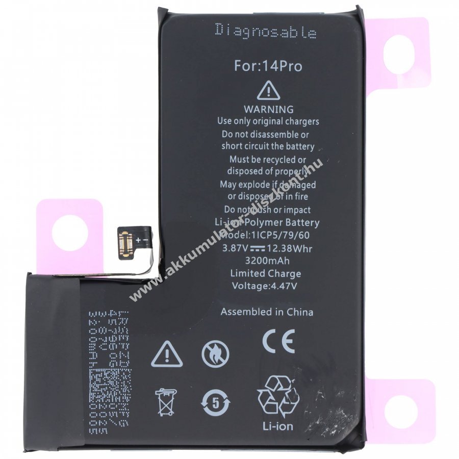 Helyettesítő Akkumulátor Apple iPhone 14 Pro 3,87V 3200mAh Li-Polymer