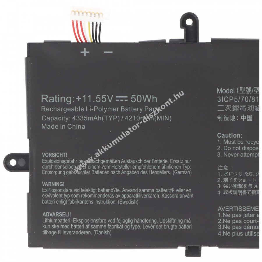 11.55V .mAh/50Wh Li-Polymer fekete 291.2mm x 90.6mm x 5.1mm AccuCell