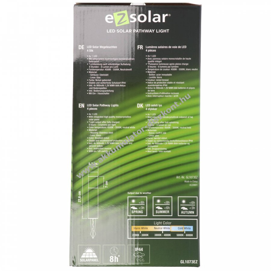 4db LED napelemes kerti világítás rozsdamentes acél NiMH AA 900mAh