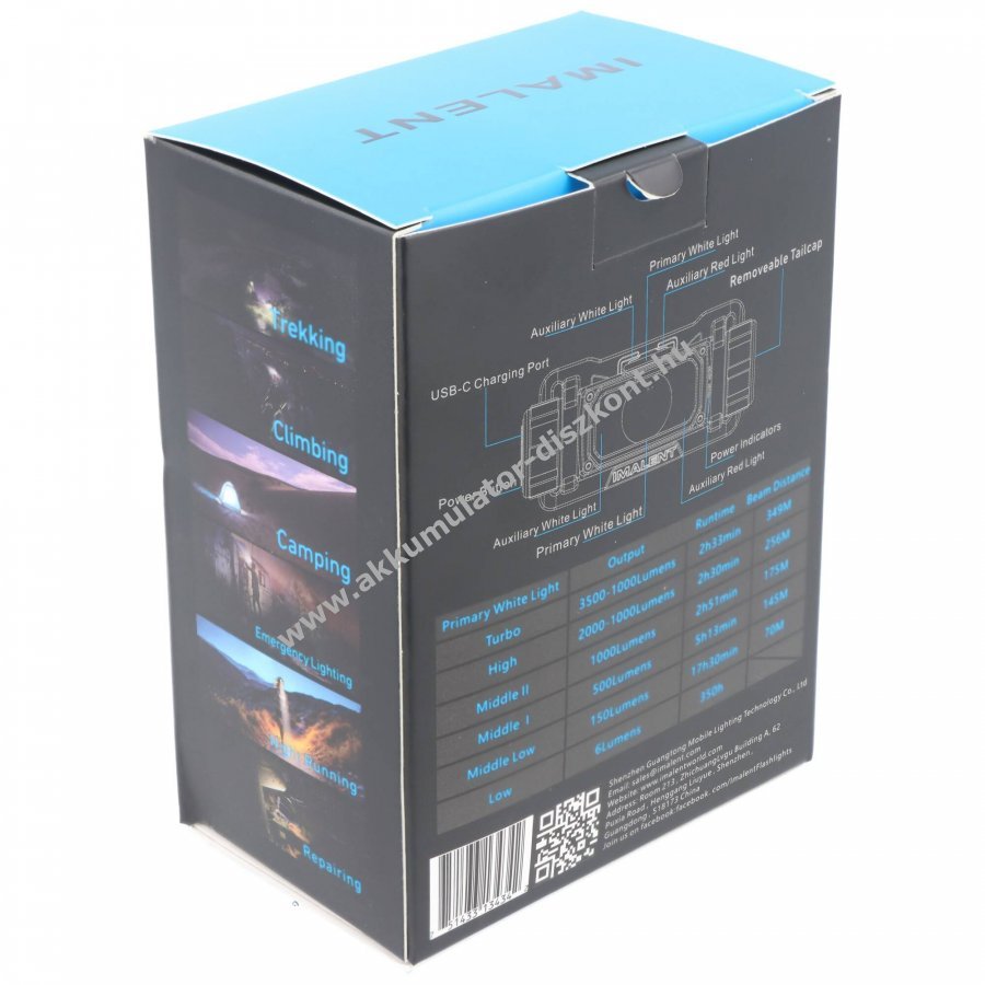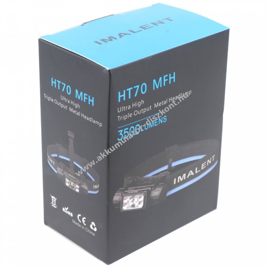Imalent HT70 fejlámpa, homlok lámpa 3500 Lumen 3 fényforrás + 5000mAh Li-Ion Akkumulátor