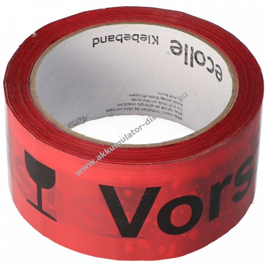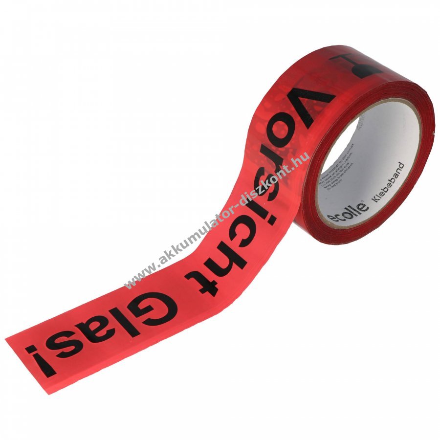 Önragasztó PVC csomagoló szalag piros alapon fekete 'Vigyázat Üveg' felirattal. 6db/csomag, minden tekercs 66m hosszú és 48mm széles.