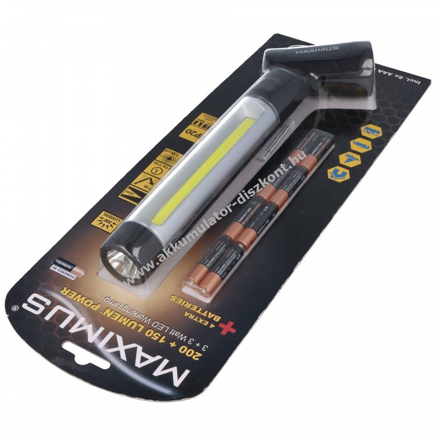 Maximus M-WKL-020-DU2 munkalámpa 3W COB LED 3W LED 8xAAA