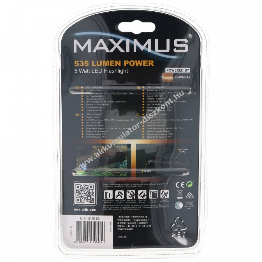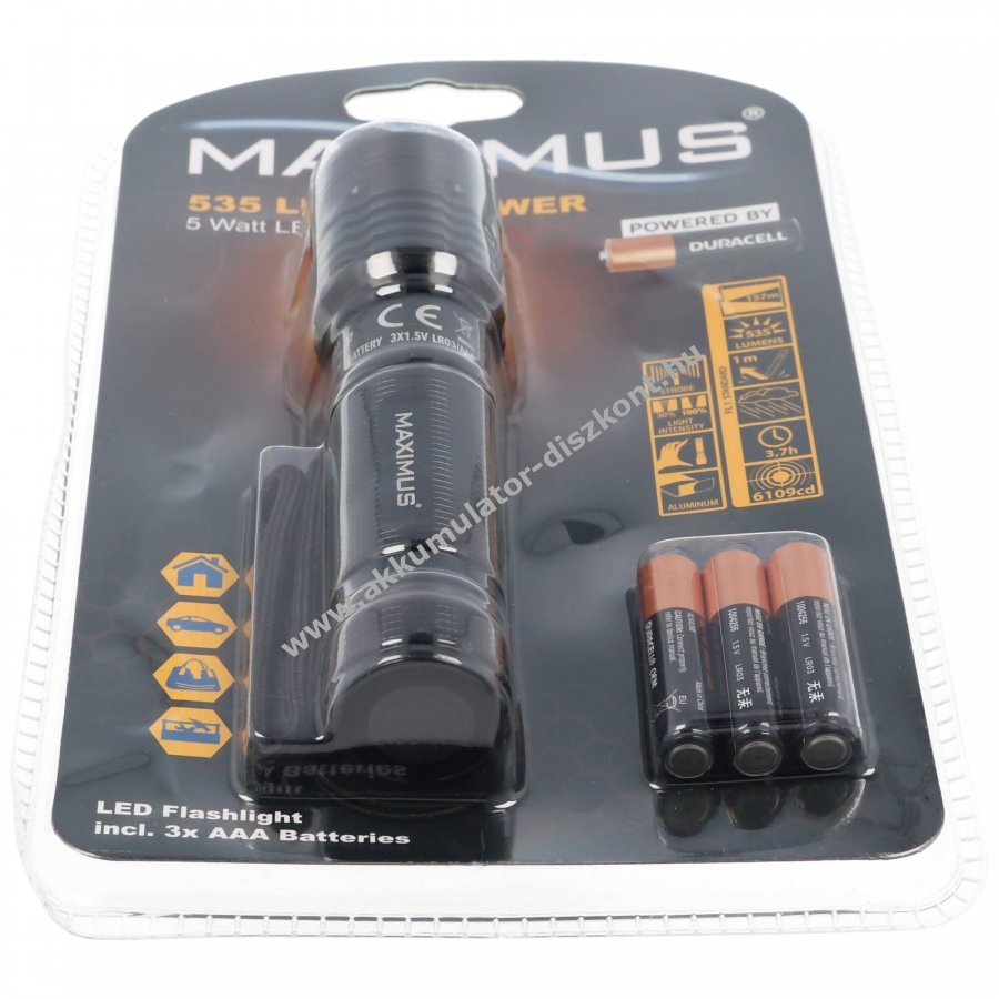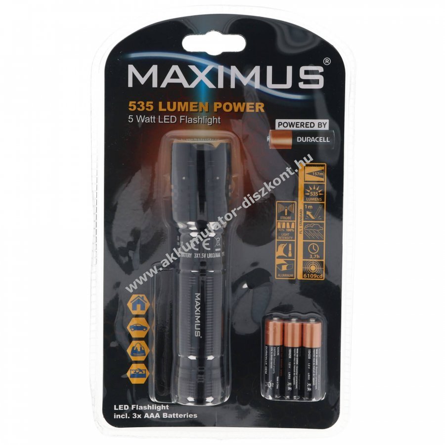 Duracell LED zseblámpa 5W 535 lumen 3xAAA mikro elem alkáli