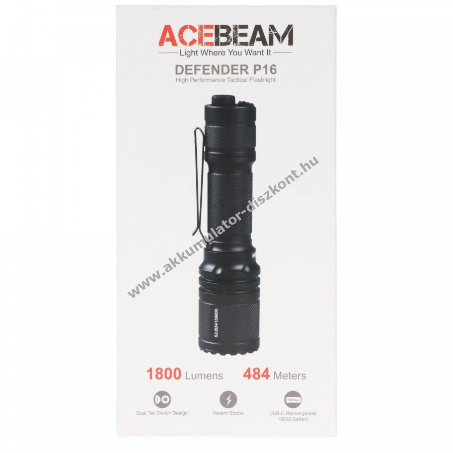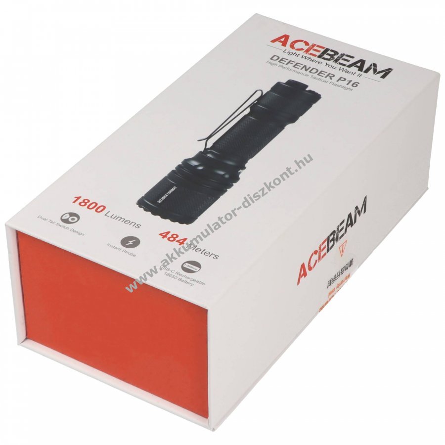 AceBeam P16 taktikai zseblámpa 1.800 lumen 18650 Li-ion