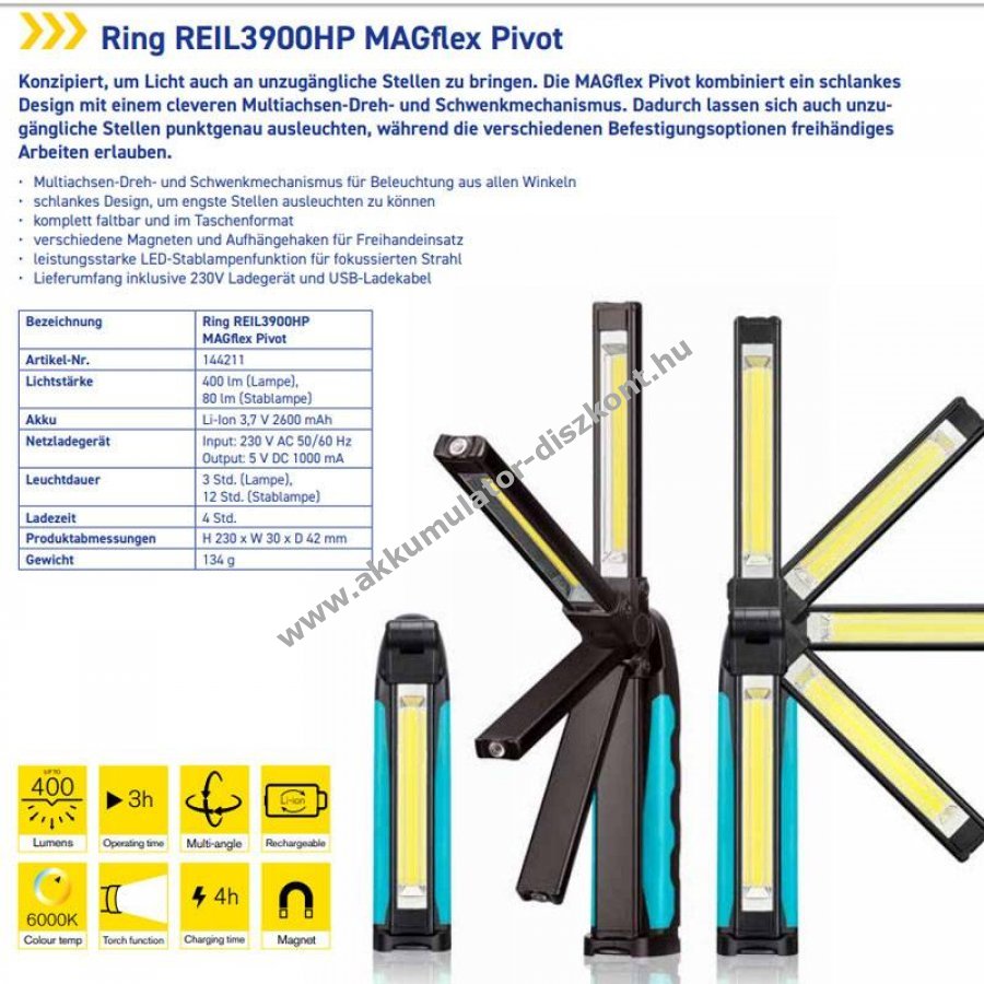 Ring REIL3900HP MAGflex Pivot LED inspektiós lámpa Li-Ion Akkumulátorval és töltővel