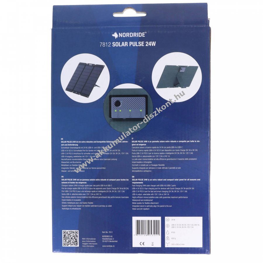 A Nordride 7812 Solar Pulse kompakt és robusztus 24W gyors töltésre alkalmas szolárpanel USB-A és USB-C csatlakozókkal, ideális túrázáshoz, kempinghez és útközbeni használathoz.