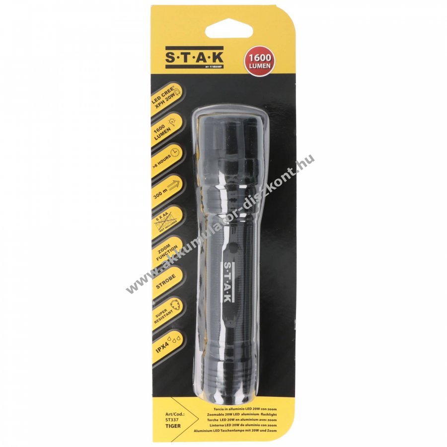 LED zseblámpa, LED CREE XPH 20W zoommal, 6 db AA elem
