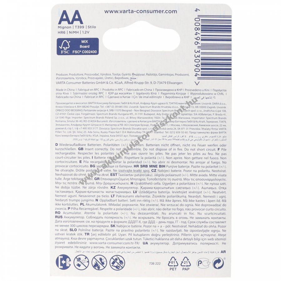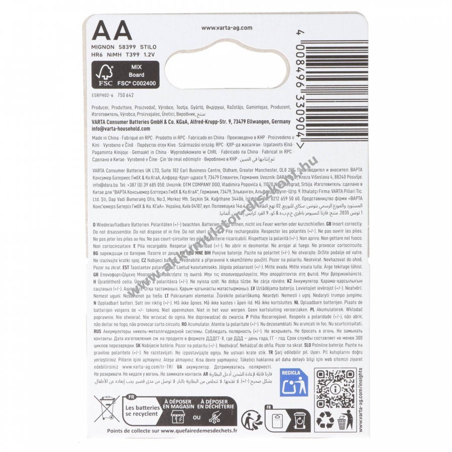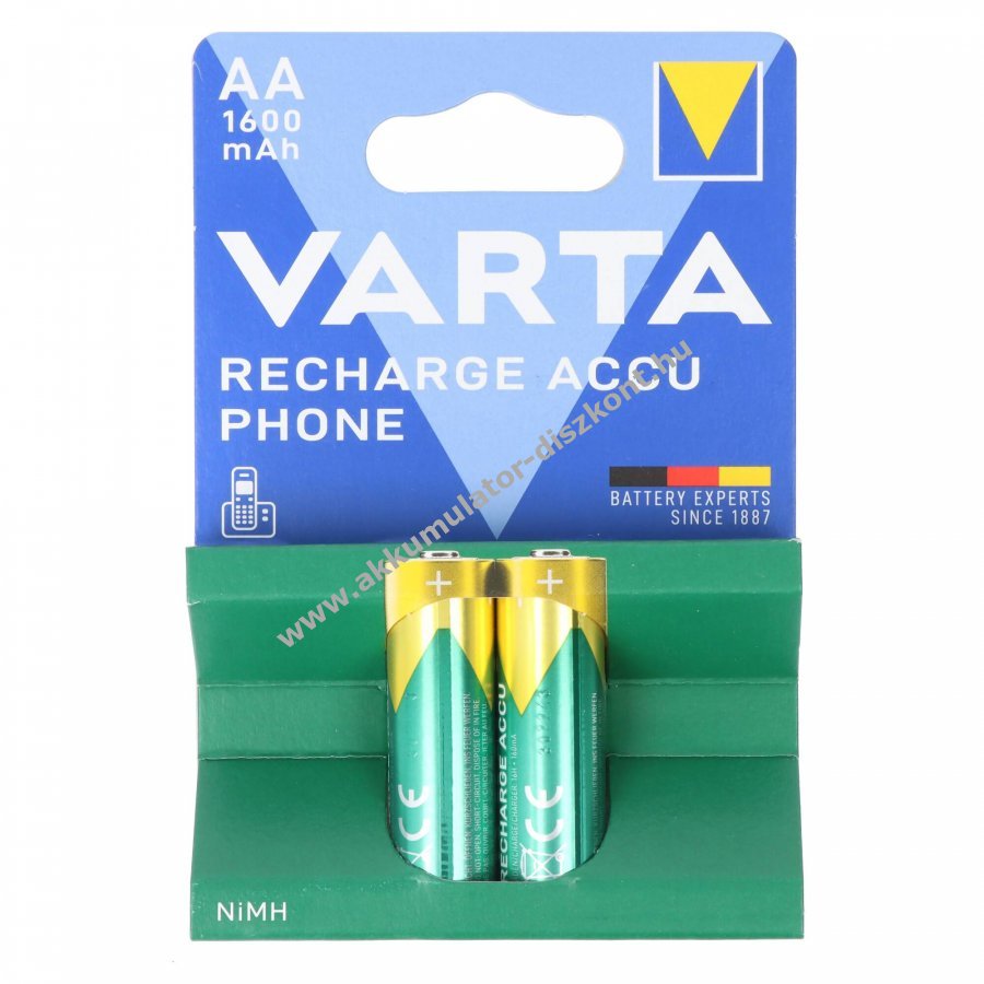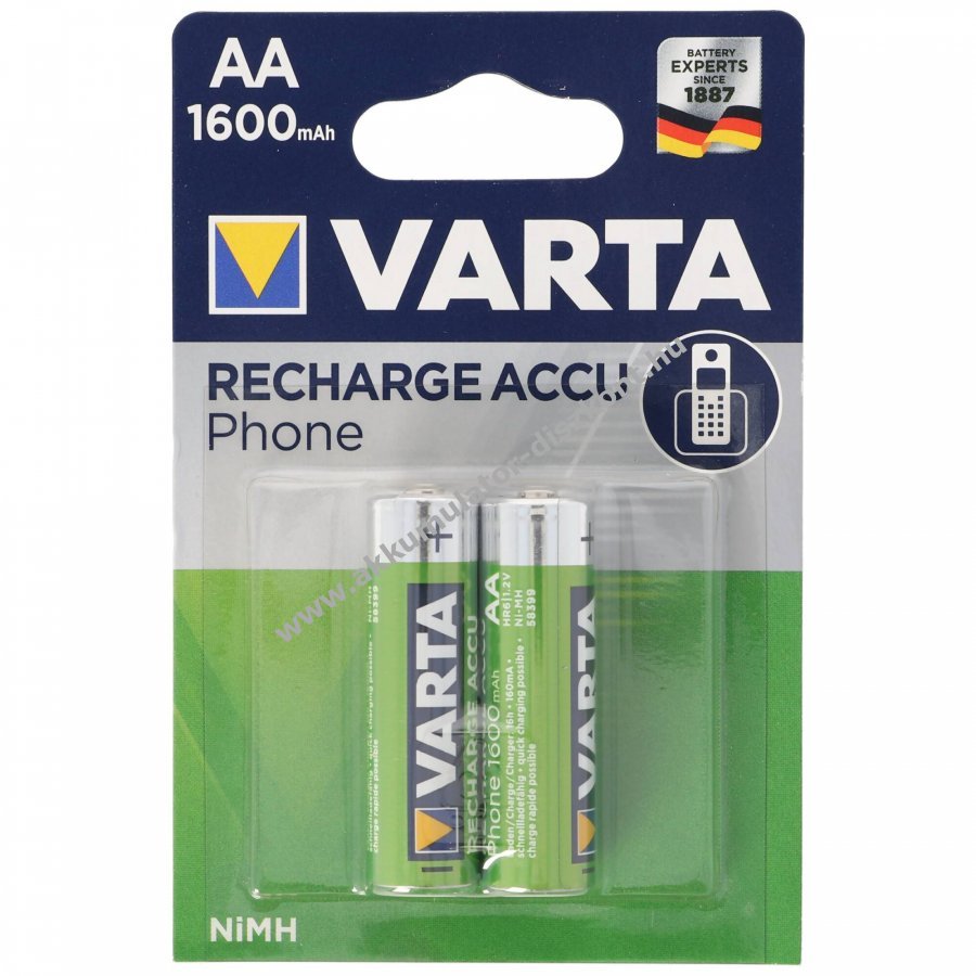 Varta Phone Power T399 AA Mignon ceruza NiMH akkumulátor kifejezetten DECT vezeték nélküli telefonokhoz, újratölthető akár 1000 töltési ciklusig. Méretek: 50,5x14,5mm feszültség: 1,2V kapacitás: 1600mAh tömeg: 26g.