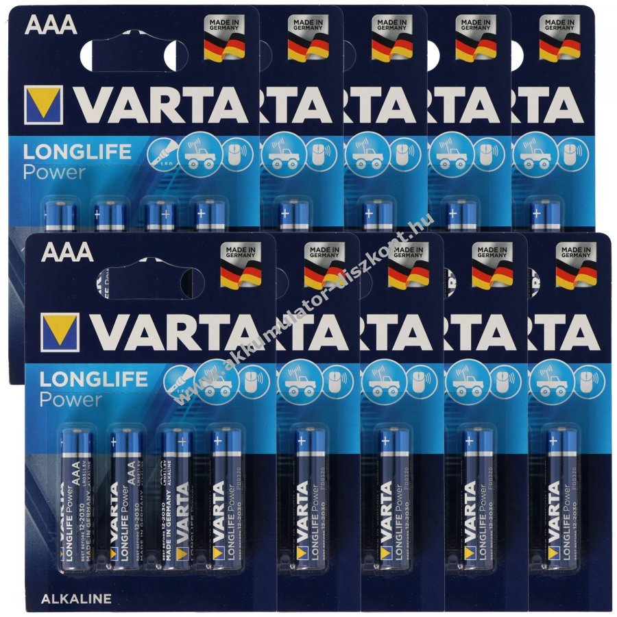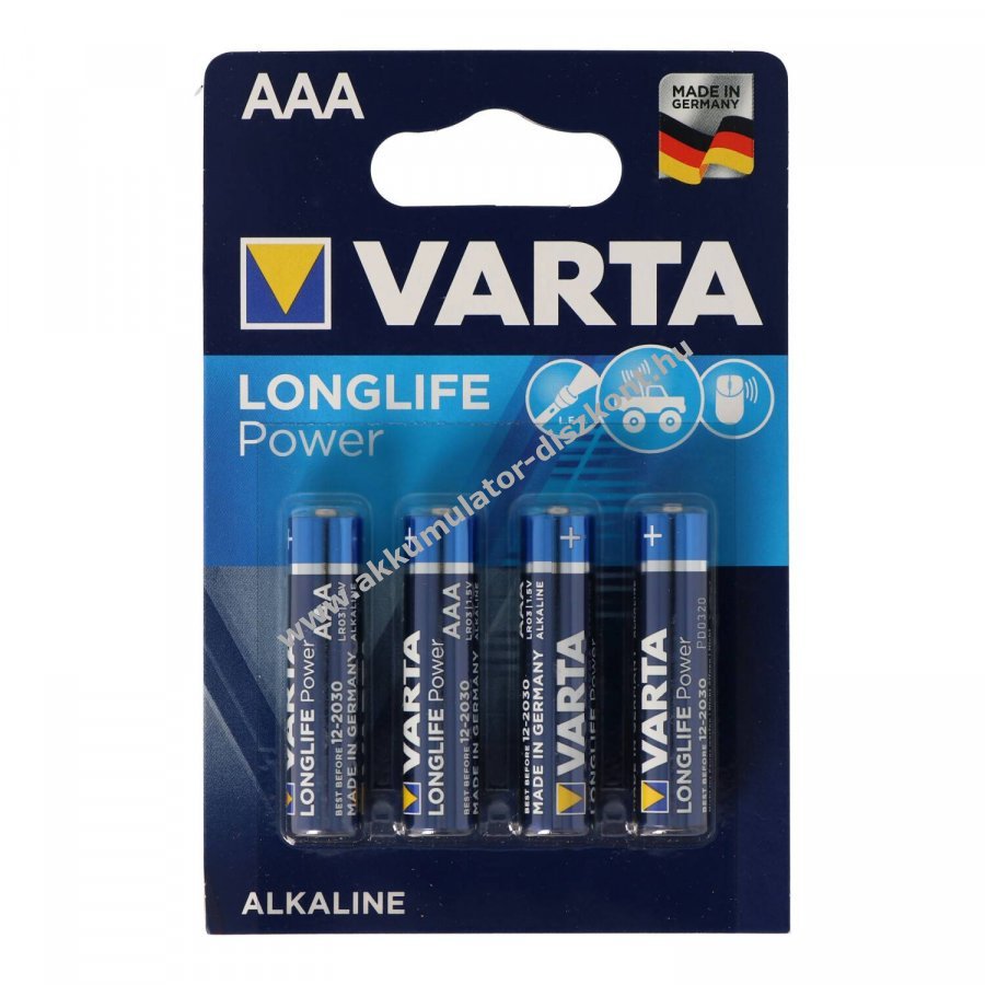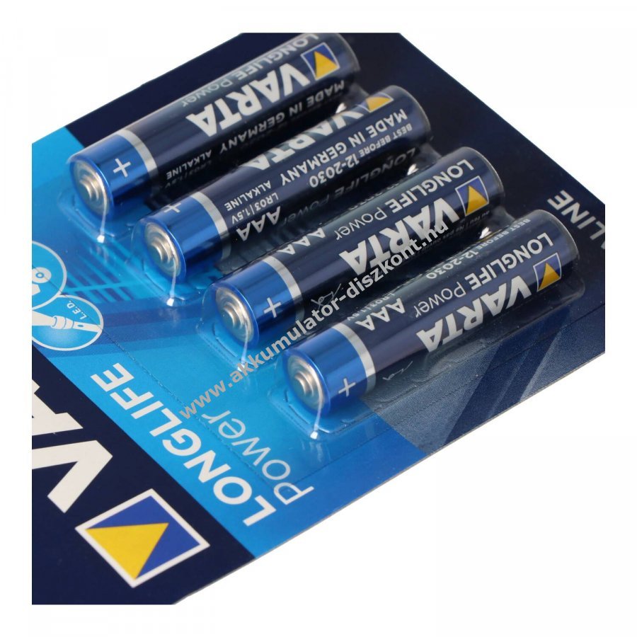 Varta Longlife Power (korábban High Energy) AAA (mikro) nagy teljesítményű primér alkalikus elem, különösen energiaigényes készülékekhez, mint játékok, audióeszközök, elektronikus játékok és füstjelzők.