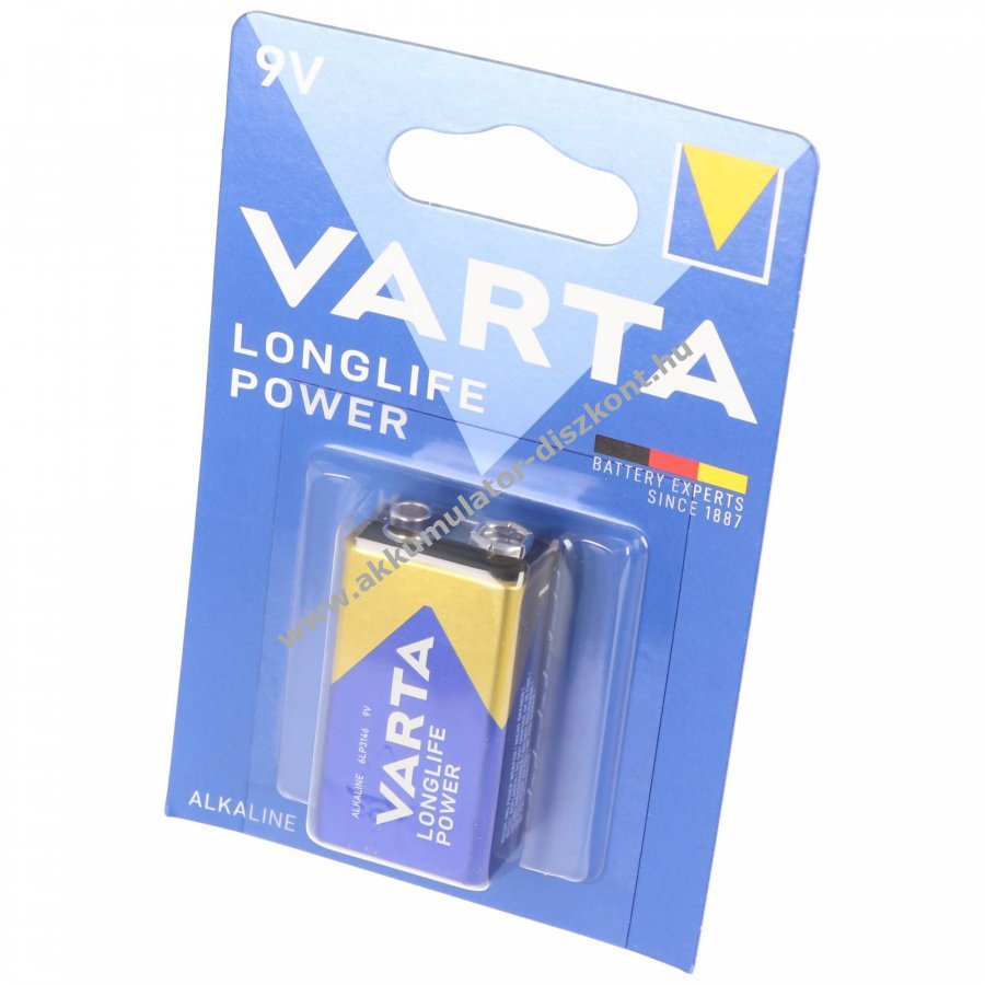 Varta Longlife Power 9V alkáli elem, korábbi nevén High Energy, megbízható és nagy teljesítményű energiaforrás.