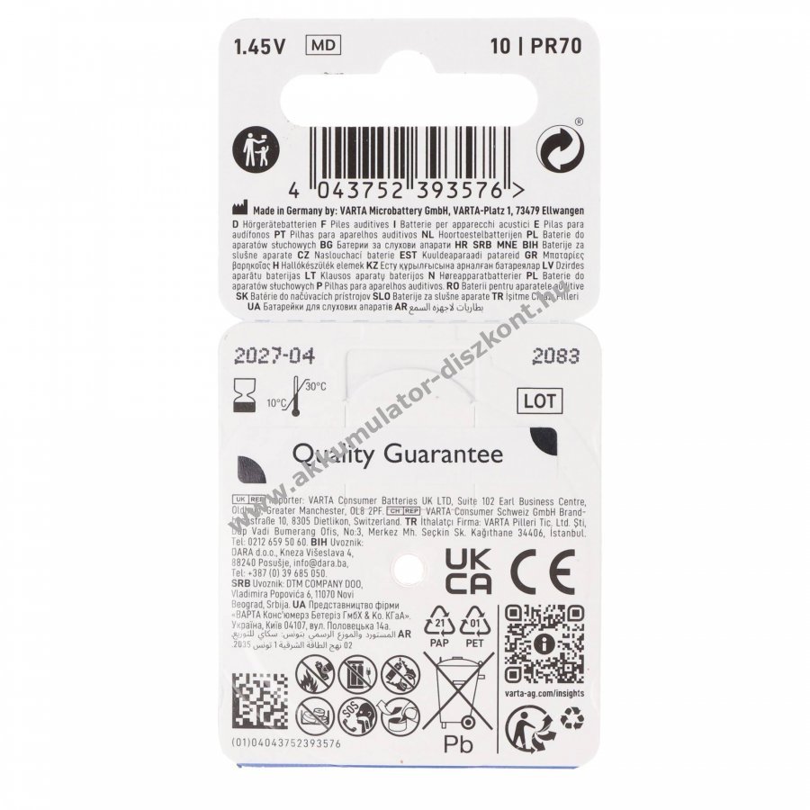 Ez a PR70 elem kiváló választás| legyen szó ceruzaelemről| góliátelemről| bébielemről| fotóelemről| ipari elemről| gombelemről| hallókészülék elemről vagy egyéb speciális elemtípusról. A prémium minőségű anyagok és a fejlett technológia biztosítják a hosszú élettartamot és a megbízható teljesítményt. Ezek az elemek ideálisak mindennapi használatra és professzionális alkalmazásokhoz is| garantálva a megbízhatóságot és a biztonságot.