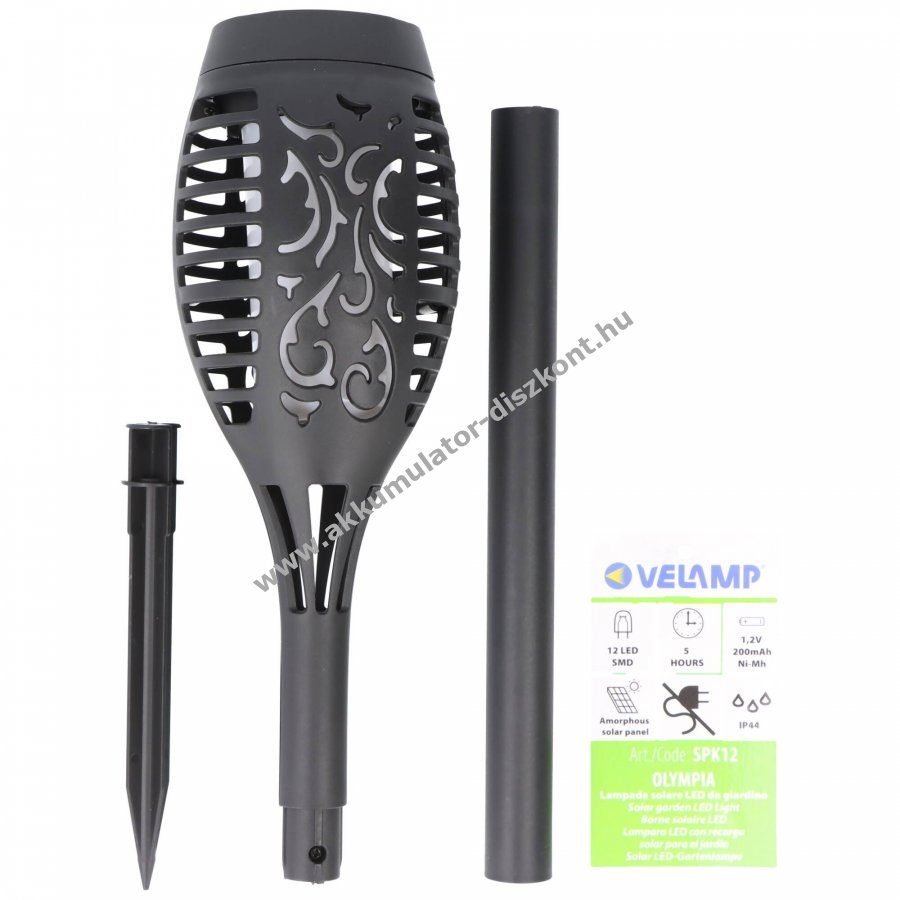 Velamp OLYMPIA napelemes kerti karó 51cm flammeffekt LED lámpa