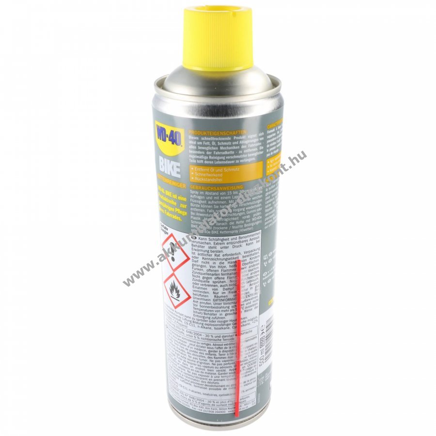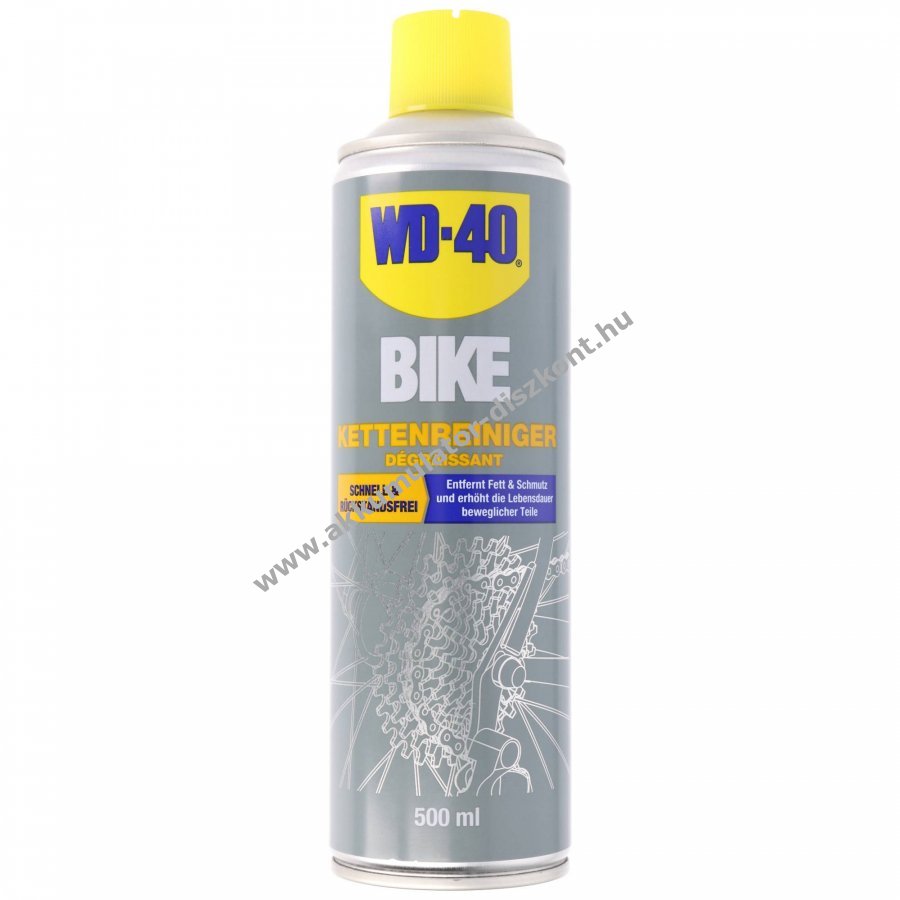WD-40 BIKE lánctisztító 500ml gyorsan és maradékmentesen eltávolítja a zsírt és a szennyeződéseket, ezáltal növeli a kerékpár mozgó alkatrészeinek élettartamát. Alkalmas lánc, váltó és fogaskoszorúk tisztítására.