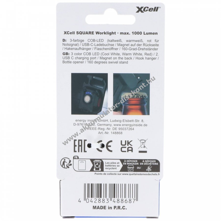XCell LED mini lámpa 1000 lumen újratölthető 3 színű COB-LED