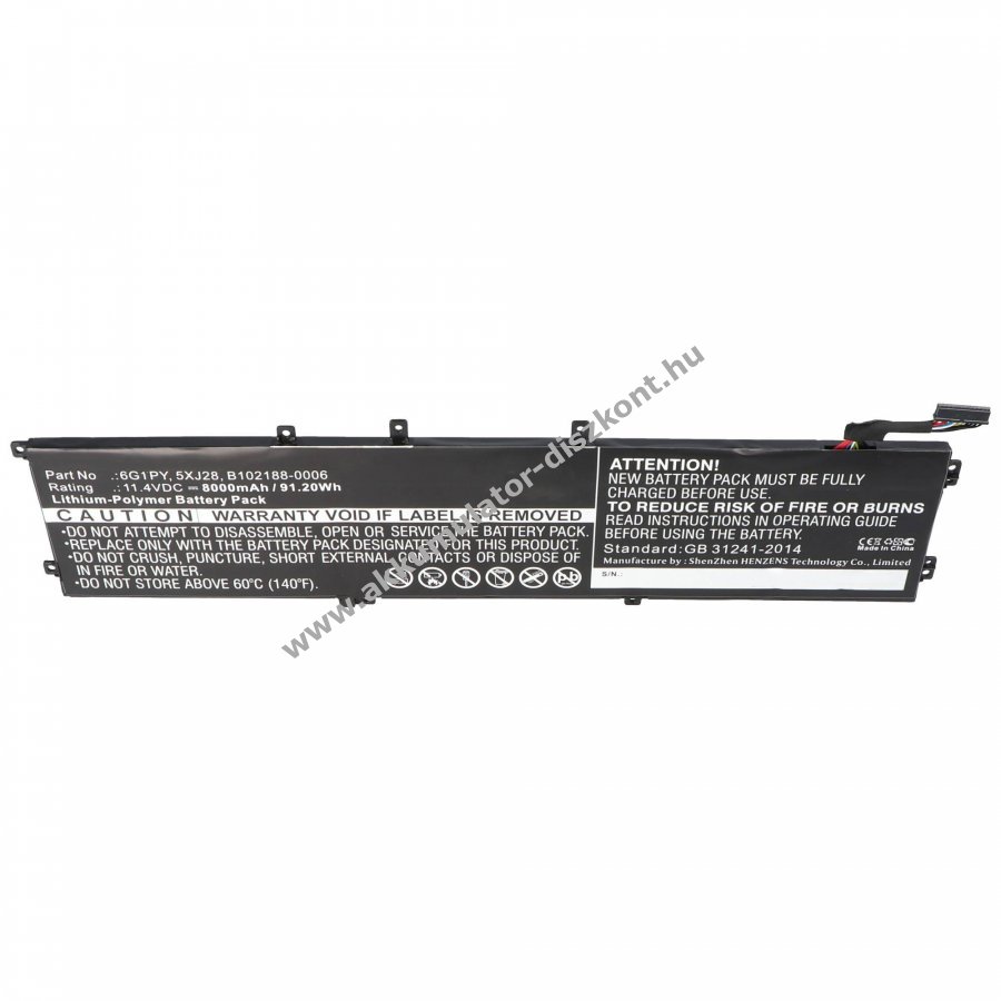 Helyettesítő Akkumulátor Dell Precision M5520 11,4V 8000mAh lítium ion