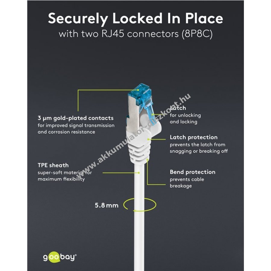 Kiváló minőségű réz vezető 3µ aranyozott érintkezőkkel a stabil kapcsolatért és hosszjelzéssel a törésvédett Slimline burkolaton.