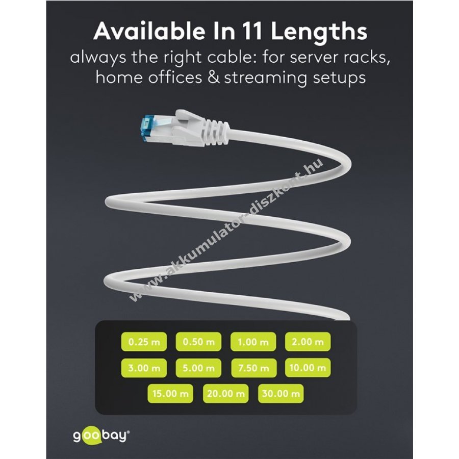 Ultrarugalmas CAT 6A patch kábel puha TPE külső burkolattal a könnyű kezelhetőségért és kellemes tapintásért. Kiváló választás otthoni irodába, szerver szekrénybe vagy streaming rendszerhez.