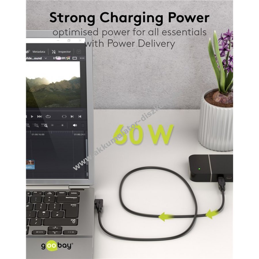 Nagyon gyors adatátvitel akár 5 Gbit/s sebességgel és hatékony töltés Power Delivery technológiával. 90 fokos csatlakozója miatt a kábel szorosan illeszkedik az eszközhöz, így csökkenti a kábel törésének kockázatát. 60 W teljesítménnyel ideális laptopok, tabletek, SSD-k és játékkonzolok töltéséhez. Kompatibilis Thunderbolt™ 3 és 4 portokkal valamint AMD AM5 foglalattal. Használható Lenovo, HP, Dell, Apple MacBook és iPad készülékekkel.