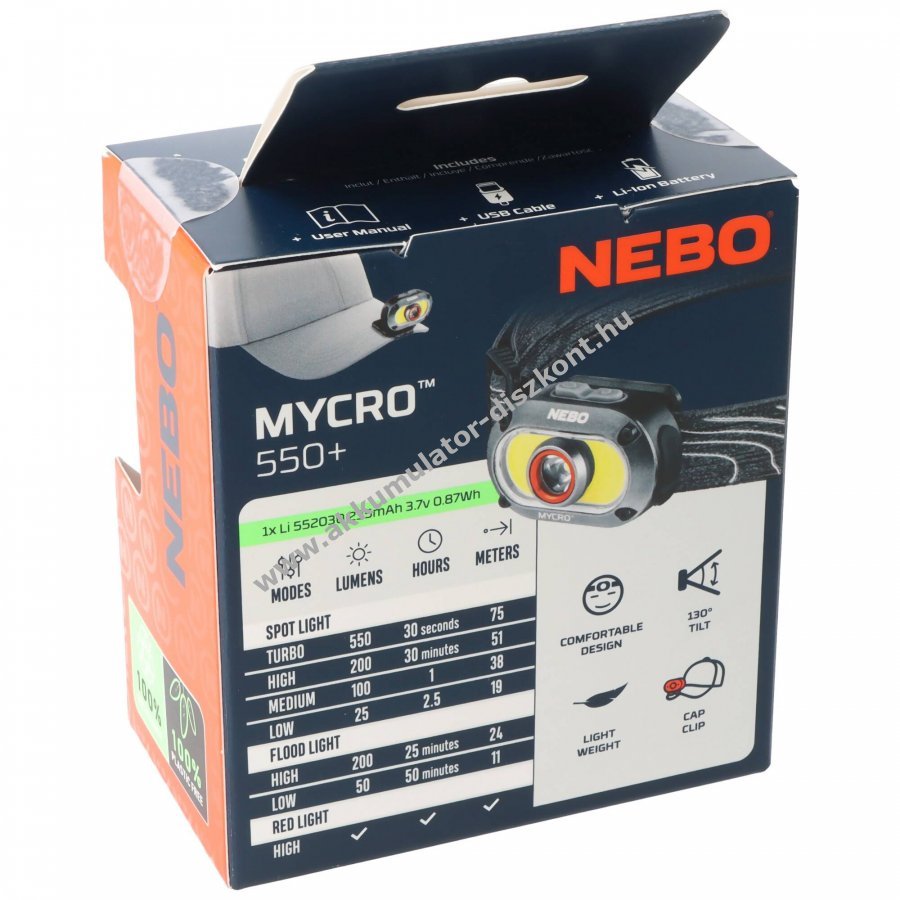 NEBO MYCRO 550 újratölthető fejlámpa