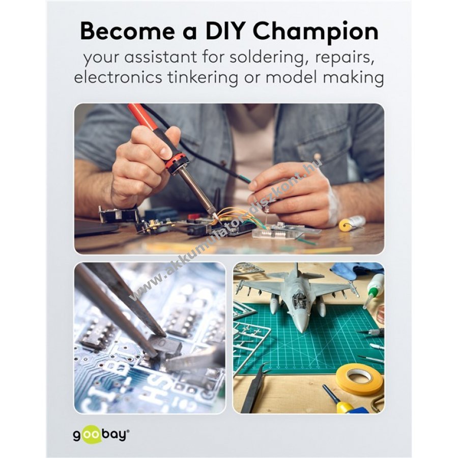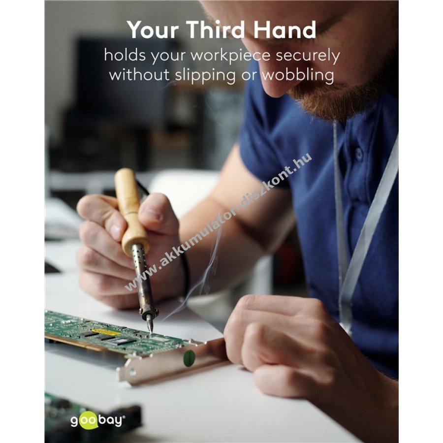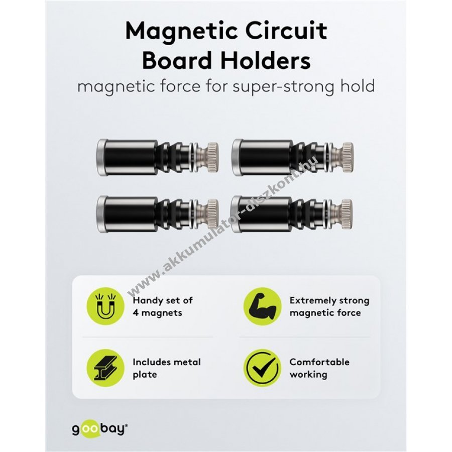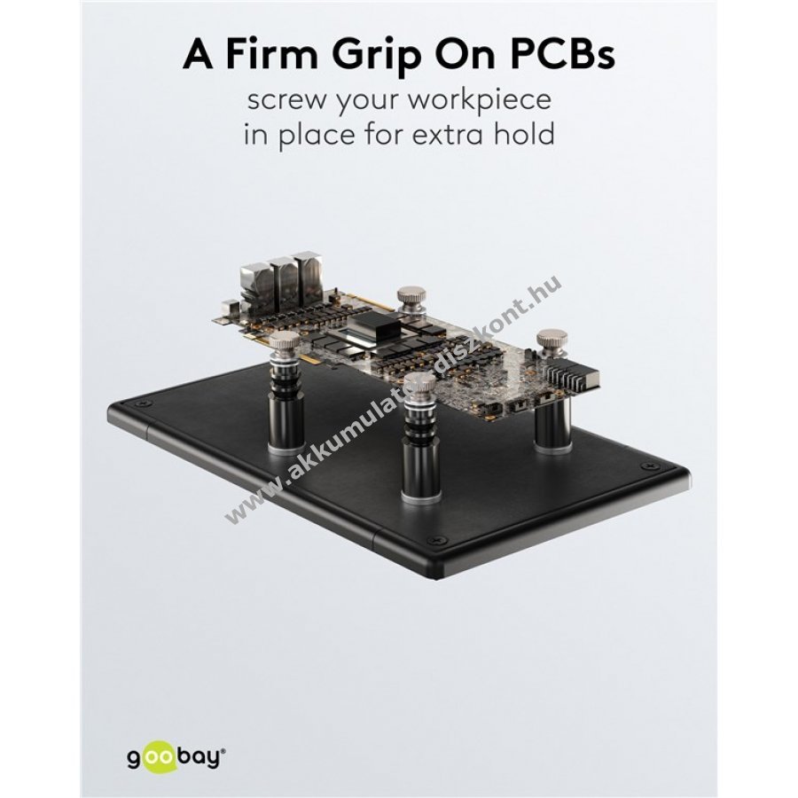 Erős mágnesek biztos tartást nyújtanak a nyák számára forrasztás közben így pontosan helyezhetők a legkisebb forrasztási pontok is és nincs elmozdulás vagy billegés