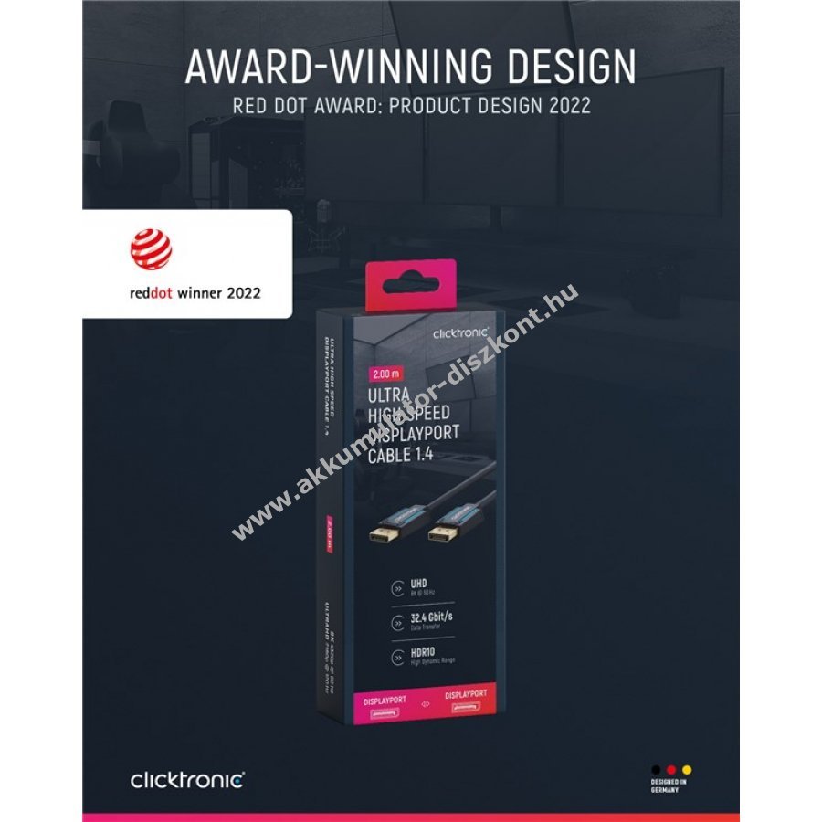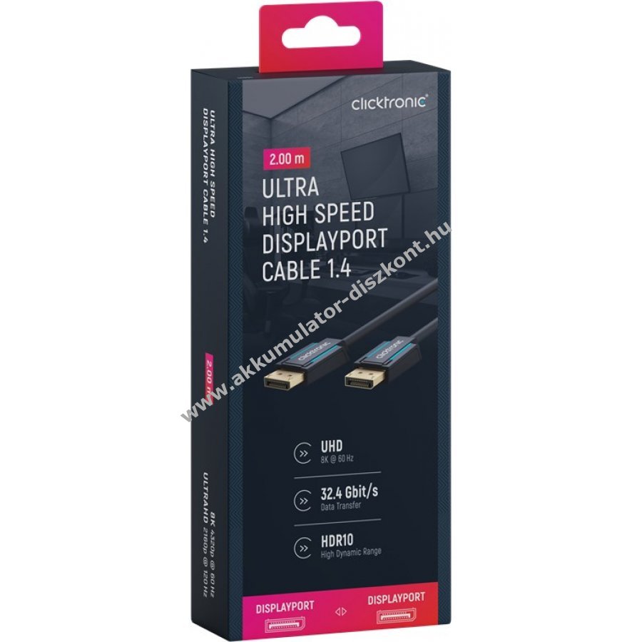 A Clicktronic DisplayPort kábel kimagasló tartósságot és stabilitást kínál 10 év garanciával. Fém érintkezők helyett 24 karátos aranyozott csatlakozók biztosítják a kiváló jelátvitelt. Kétrétegű árnyékolás és 99,9% oxigénmentes réz belső vezeték garantálja a tiszta hang- és képminőséget. A háromrészes PVC- és ABS-csatlakozó szerkezet védi a kábelt a sérülésektől és a kábel törésétől. Támogatja az UHD jelátvitelt akár 8K 60Hz és 4K 120Hz felbontásban. Kompatibilis G-Sync és FreeSync technológiákkal a zökkenőmentes játékélményért. Mechanikus csatlakozózár megakadályozza a kilazulást és a jelkimaradást.