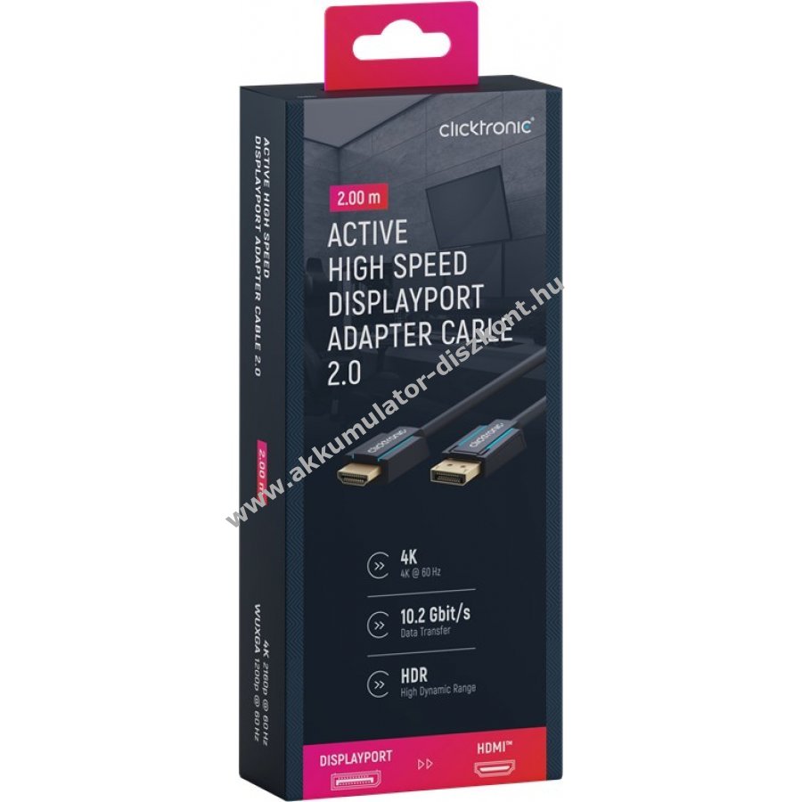 Clicktronic aktív DisplayPort-HDMI adapterkábel 2m 4K 60Hz