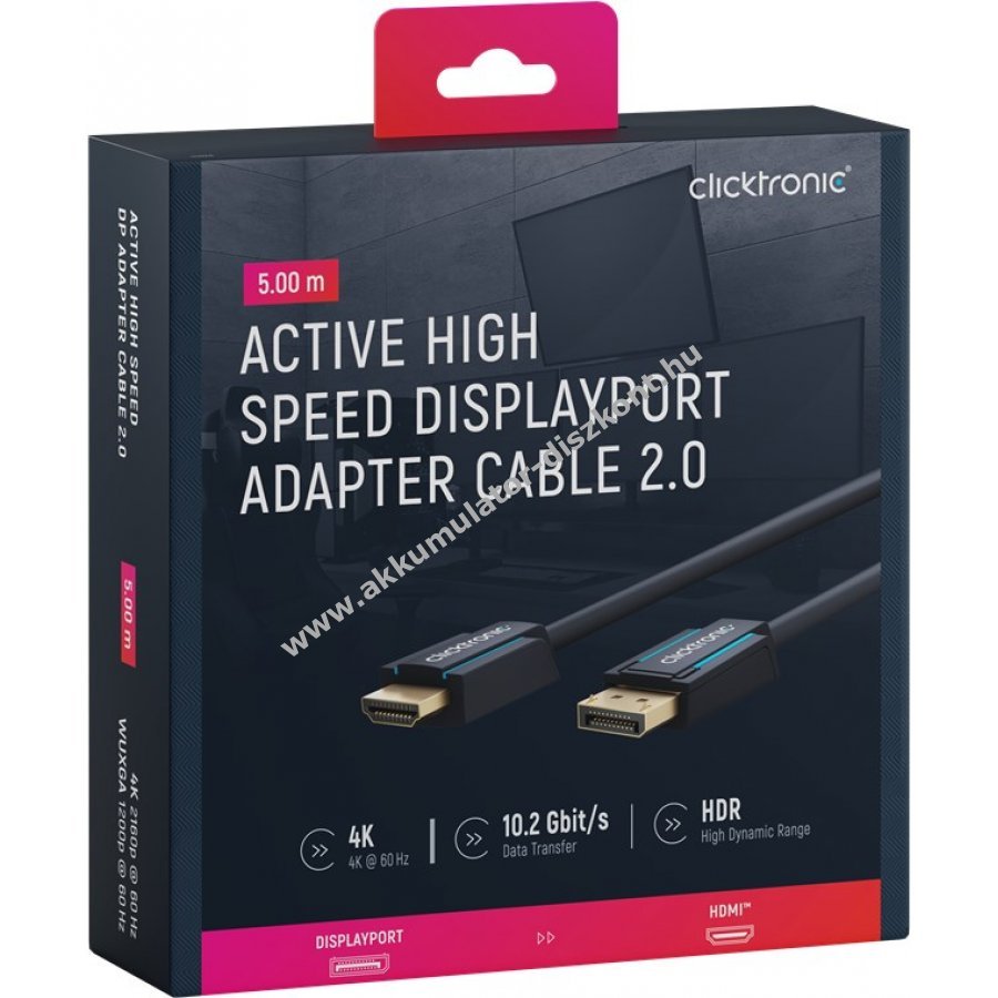 Clicktronic aktív DisplayPort HDMI átalakító kábel 5m 4K 60 Hz