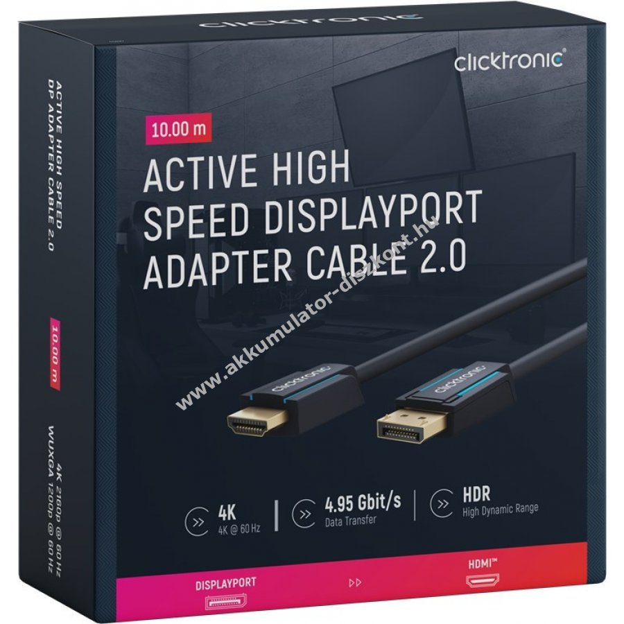 Clicktronic aktív DisplayPort HDMI adapterkábel 10m 4K60Hz