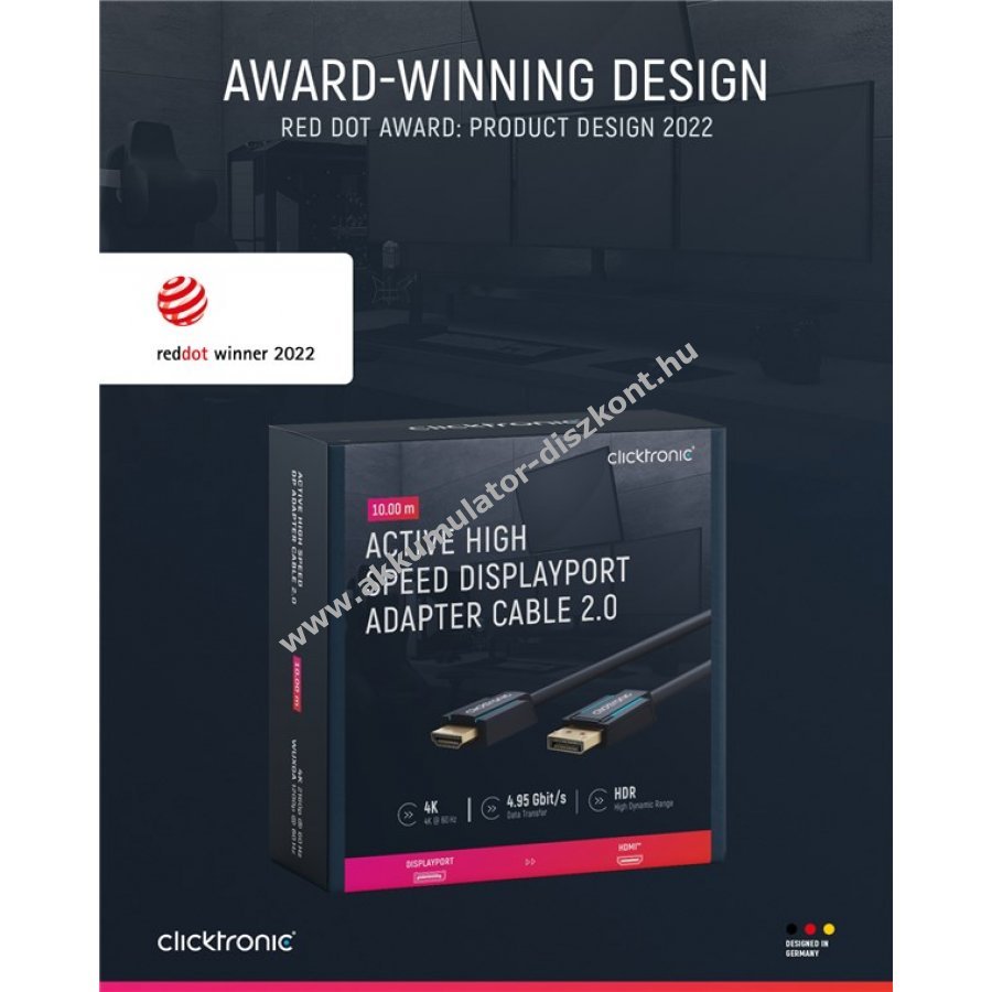 A Clicktronic kábelek hosszú élettartamra és stabilitásra lettek tervezve 10 év garanciával. A háromrészes csatlakozó PVC és ABS elemekből áll, ami védi a kábelt a sérülésektől. A nikkelezettt érintkezők és tiszta réz vezetők biztosítják a kiváló hang- és képátvitelt a tökéletes otthoni mozi és játékélmény érdekében.