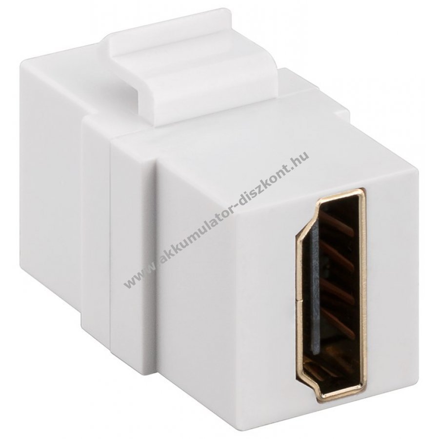 Két függőleges HDMI-A aljzat falba szerelt HDMI kábelekhez. Alkalmas Keystone patchpanelbe, hálózati aljzatba és házba. Támogatja az Ultra HD digitális képátvitelt 8K 60Hz vagy 4K 120Hz felbontással és akár 48 Gbit/s adatátviteli sebességgel. Ideális házimozi, projektor, Blu-ray lejátszó és játékkonzol csatlakoztatásához. Fehér színű, diszkrét megjelenésű. Aranyozott érintkezők a korrózió elleni védelemért és hosszú élettartamért. Műanyag ház.