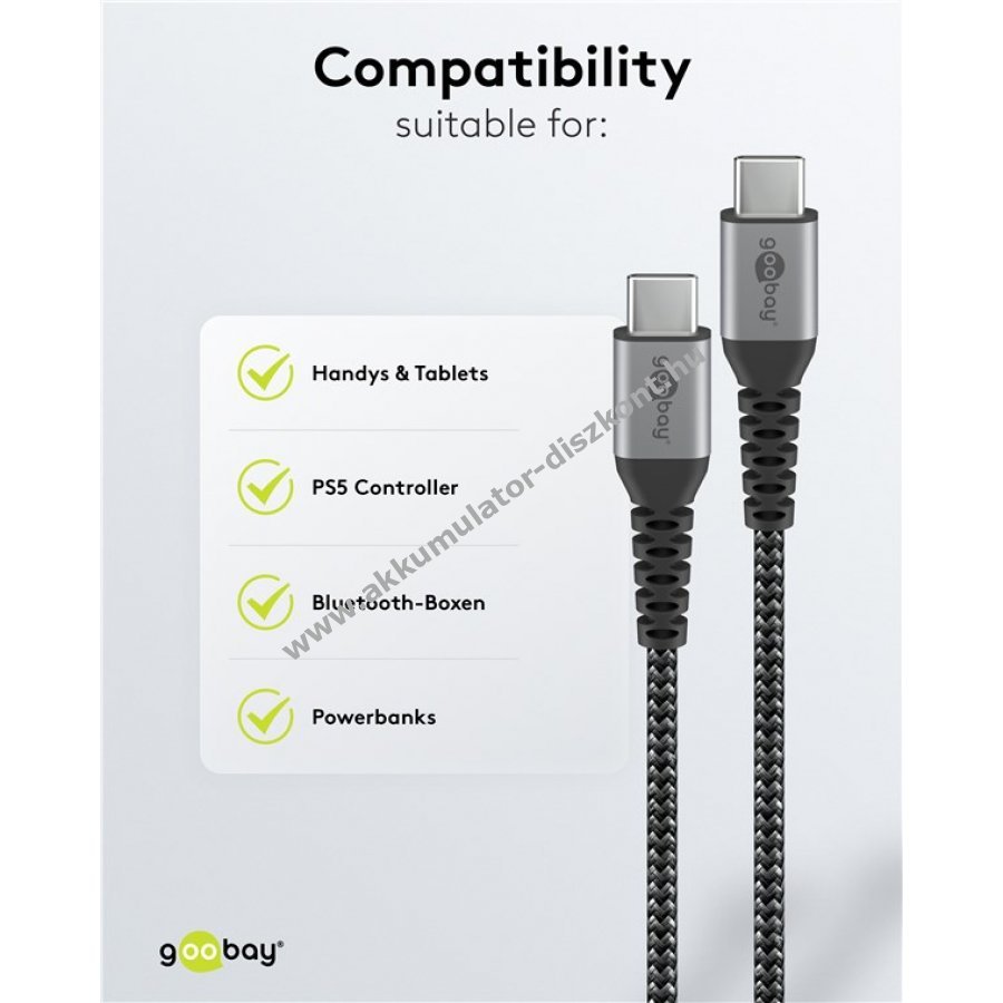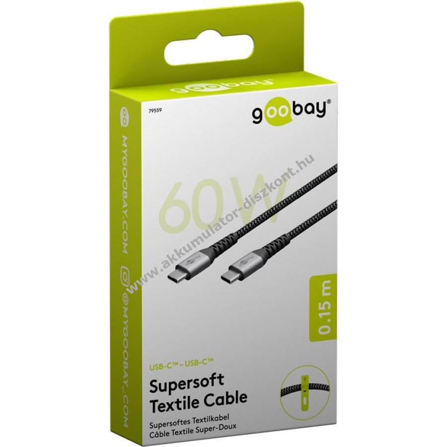 Goobay USB-C kábel textilborítással 0,15m 60W 3A fém csatlakozókkal