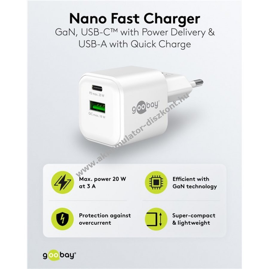 Kompakt 20W USB-C PD GaN kétportos nano gyorstöltő, gyors és megbízható töltést biztosít okostelefonoknak, tableteknek és egyéb kisebb eszközöknek otthon és útközben.