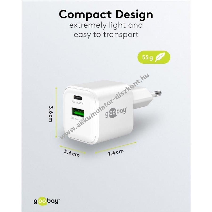 - Kétportos használat: 1xUSB-C PD és 1xUSB-A Quick Charge, egyszerre két eszköz tölthető.